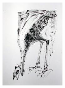 He also expressed his new thoughts in other techniques, for example lino-cut and intaglio. In lino-cut he could apply again the heavy black lines just as in his woodcuts.
